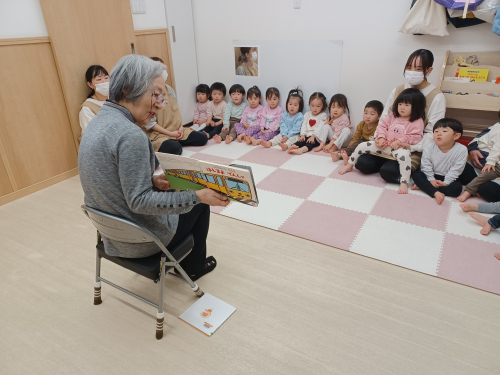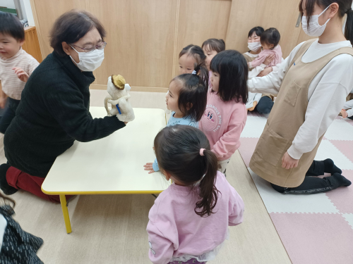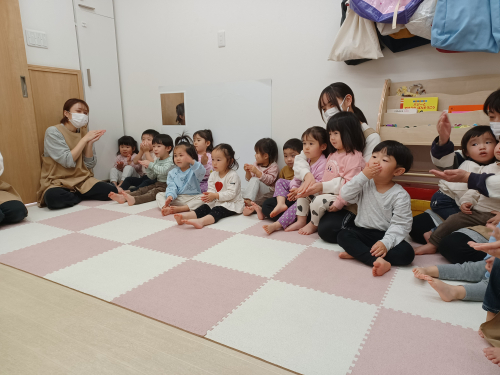 おもちの絵本のあとに、みんなでおもちつきの手遊びをしました🎵